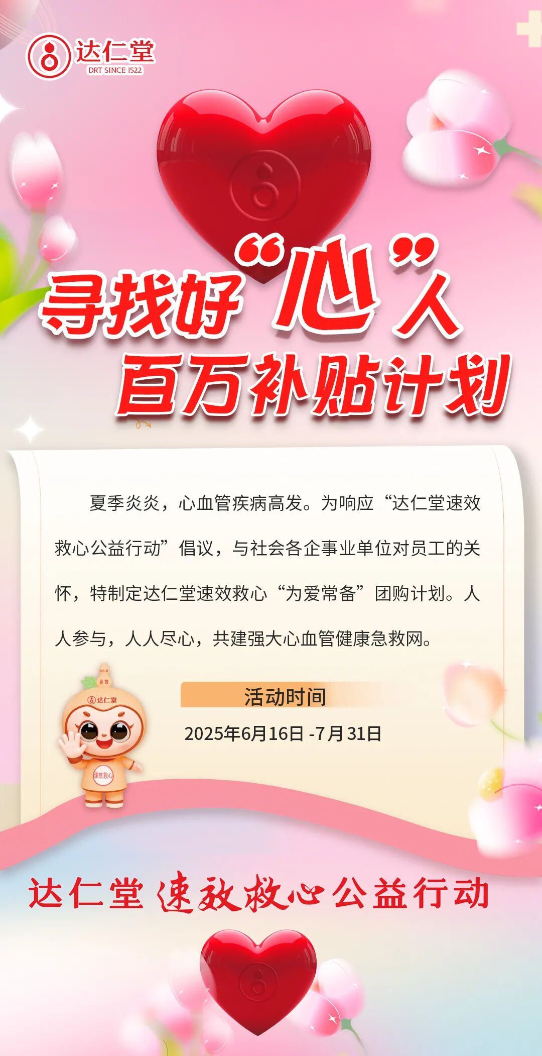 “寻找好‘心’人・百万补贴计划”持续推进,将延续至7月31日。pg电子游戏app将继续依托专业医药实力,深化与各行业合作,让更多劳动者感受“为爱常备”的温暖。