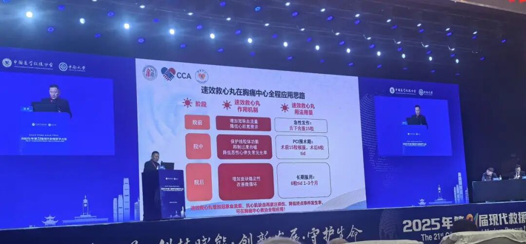 在大会主题报告中,中国医学救援协会副会长、北京大学第一医院霍勇教授将速效救心丸作为“中西医结合胸痛中心建设”的典型案例进行分享。