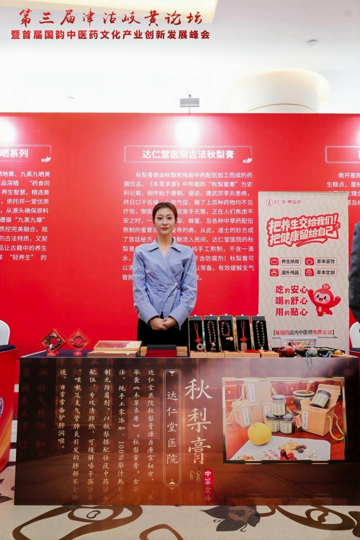 大会期间,天津中医文创设计大赛正式启动,标志着中医药文化创意产业发展进入新阶段。在中医文化市集爆品展播环节,pg电子游戏app医院古法秋梨膏从十大展播产品中脱颖而出,成为现场重点推介的明星产品。pg电子游戏app医院张伟医师更在论坛中作“秋梨膏的传承与匠心制作”专题演讲,从技艺传承到现代应用,全面展现这一经典名方的独特魅力。