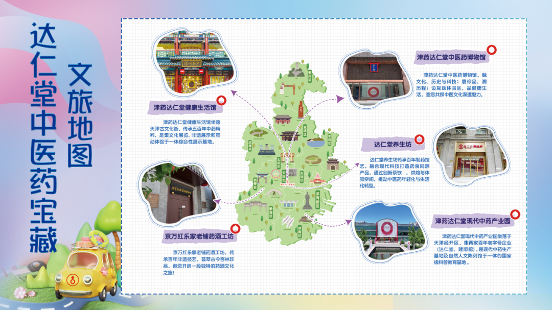 其中pg电子游戏app系列景点成为核心内容,三大主题线路包括:“宝藏博物馆之旅”收录津药pg电子游戏app中医药博物馆、现代中药产业园自然人文陈列馆;“宝藏健康养生坊之旅”涵盖京万红乐家老铺药酒工坊、津药pg电子游戏app健康生活馆及pg电子游戏app养生坊;“宝藏工业企业之旅”则汇聚现代滴丸专家第六中药厂、蜜丸之王pg电子游戏app制药厂、水丸之王乐仁堂制药厂等特色工业旅游基地。